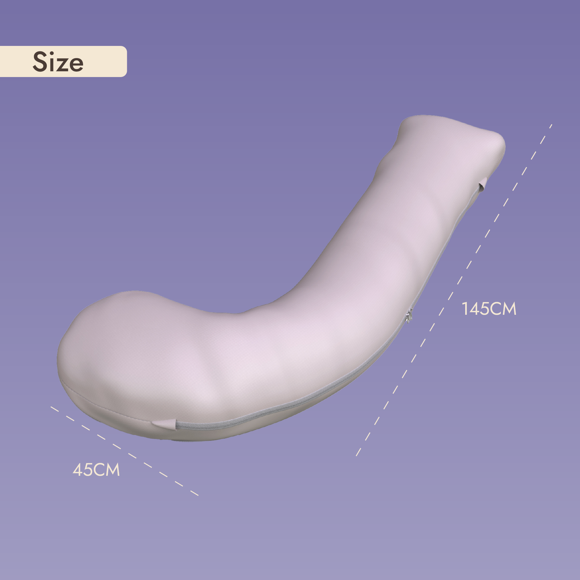 Looking for a pillow to make your pregnancy more comfortable? The Oemmie J-shaped pregnancy pillow provides perfect ergonomic support for your head, neck, back, belly, and hips, helping to reduce common pregnancy aches and improve your sleep.